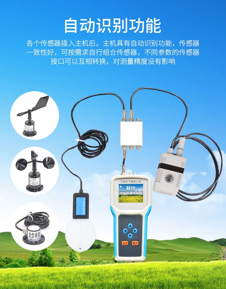 各個傳感器插入主機后,主機具有自動識別功能,傳感器一致性好,可按需求自行組合傳感器,不同參數(shù)的傳感器接口可以互相轉(zhuǎn)換,對測量精度沒有影響。